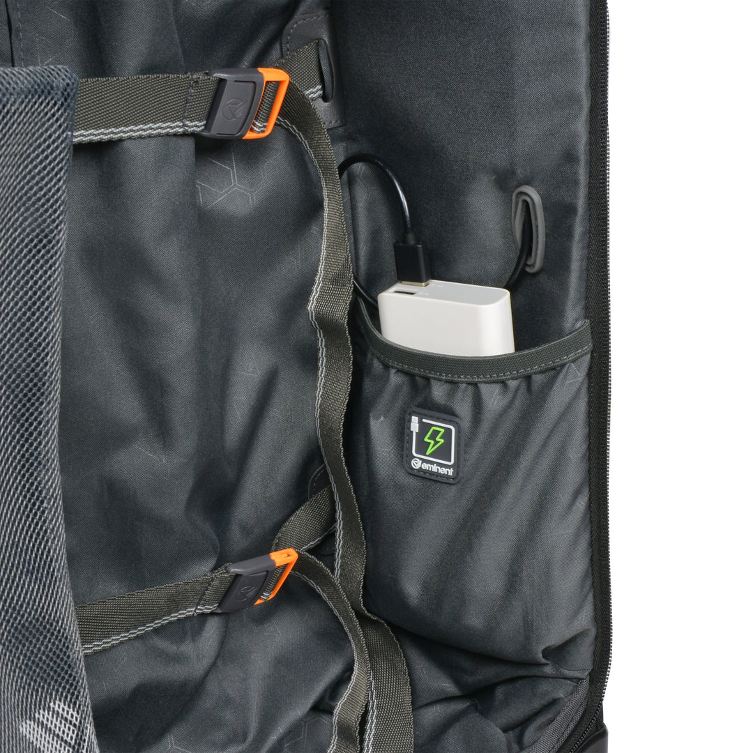 - USB connector on the outside to connect to a powerbank on the inside (cabin size only)*