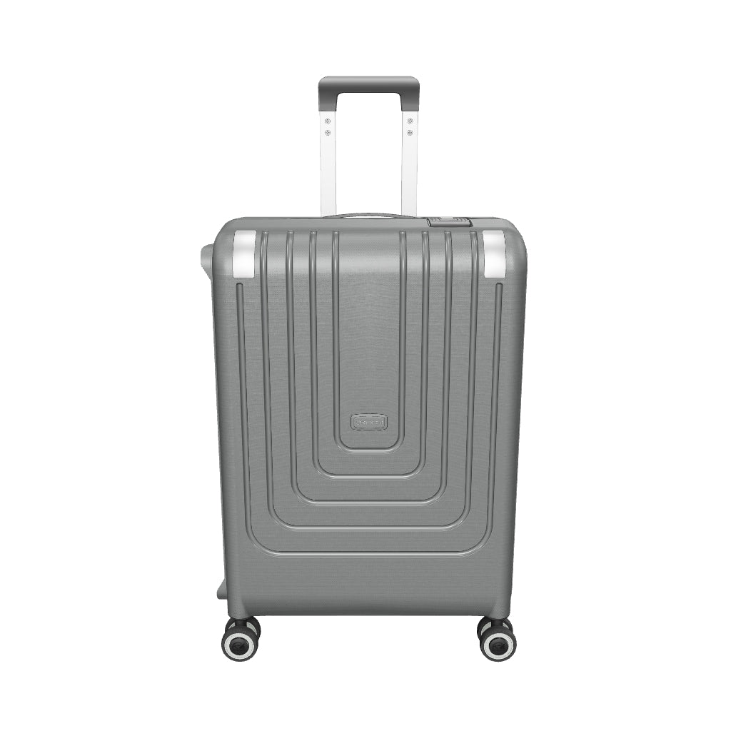Eminent Vertica Medium Size Polypropylene Suitcase Grey Front Side