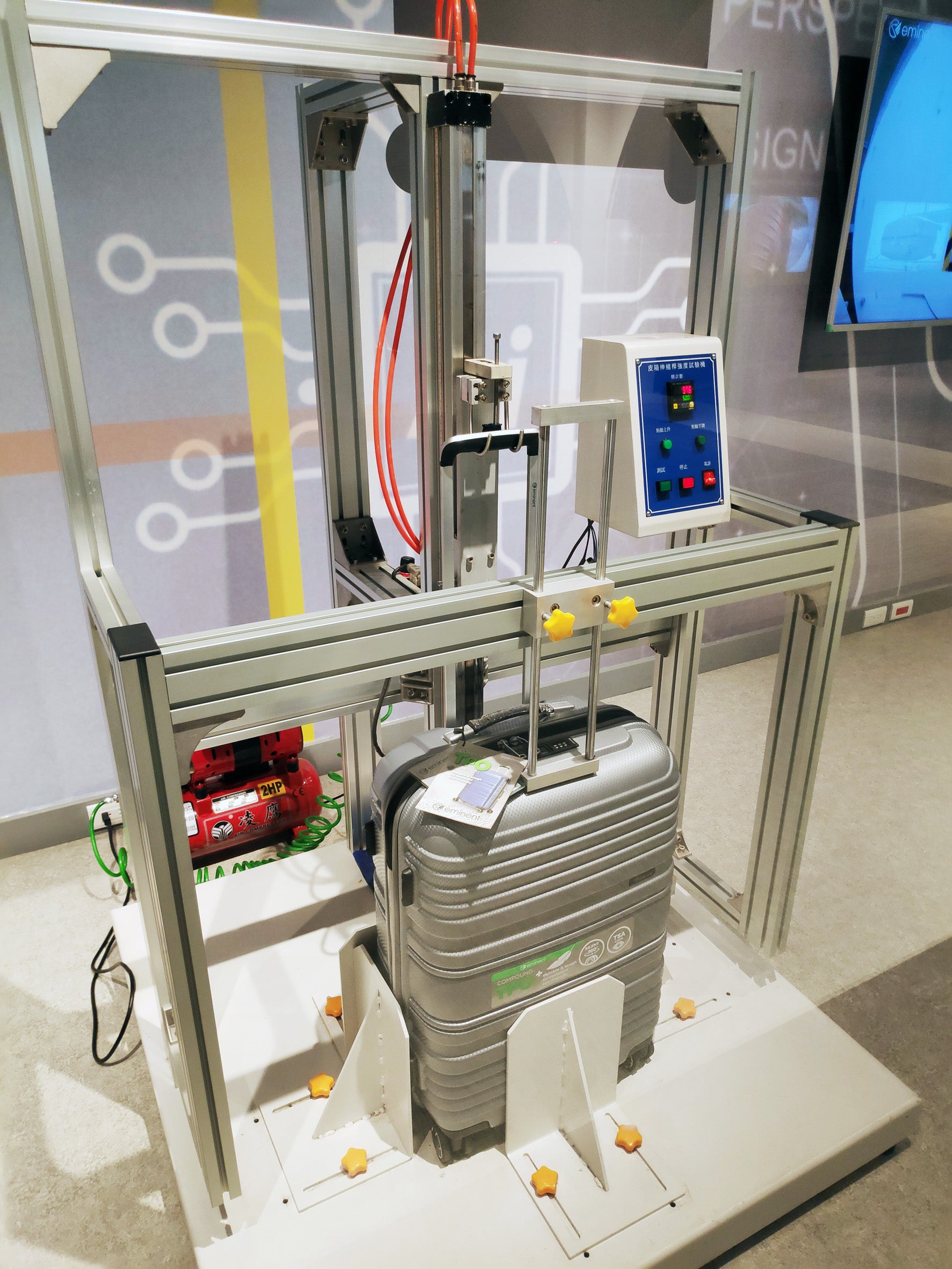 Durante il carico e lo scarico, i gusci delle valigie possono essere sottoposti a grande forza. Il test di resistenza del guscio serve a valutare la durata del guscio e può essere superato solo se il guscio può resistere a ripetute applicazioni di forza senza danni.