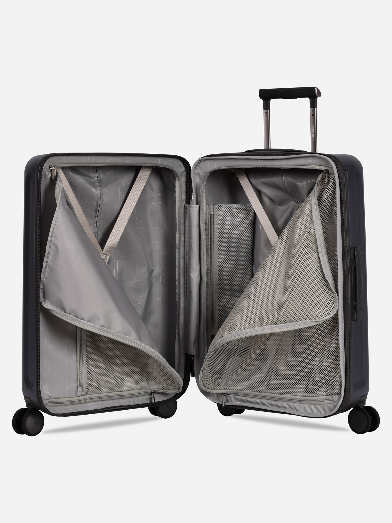 De pakriemen aan beide kanten helpen je om je spullen perfect georganiseerd te houden. Beide compartimenten worden afgesloten met een tussenschot om te voorkomen dat spullen eruit vallen wanneer je je koffer opent.